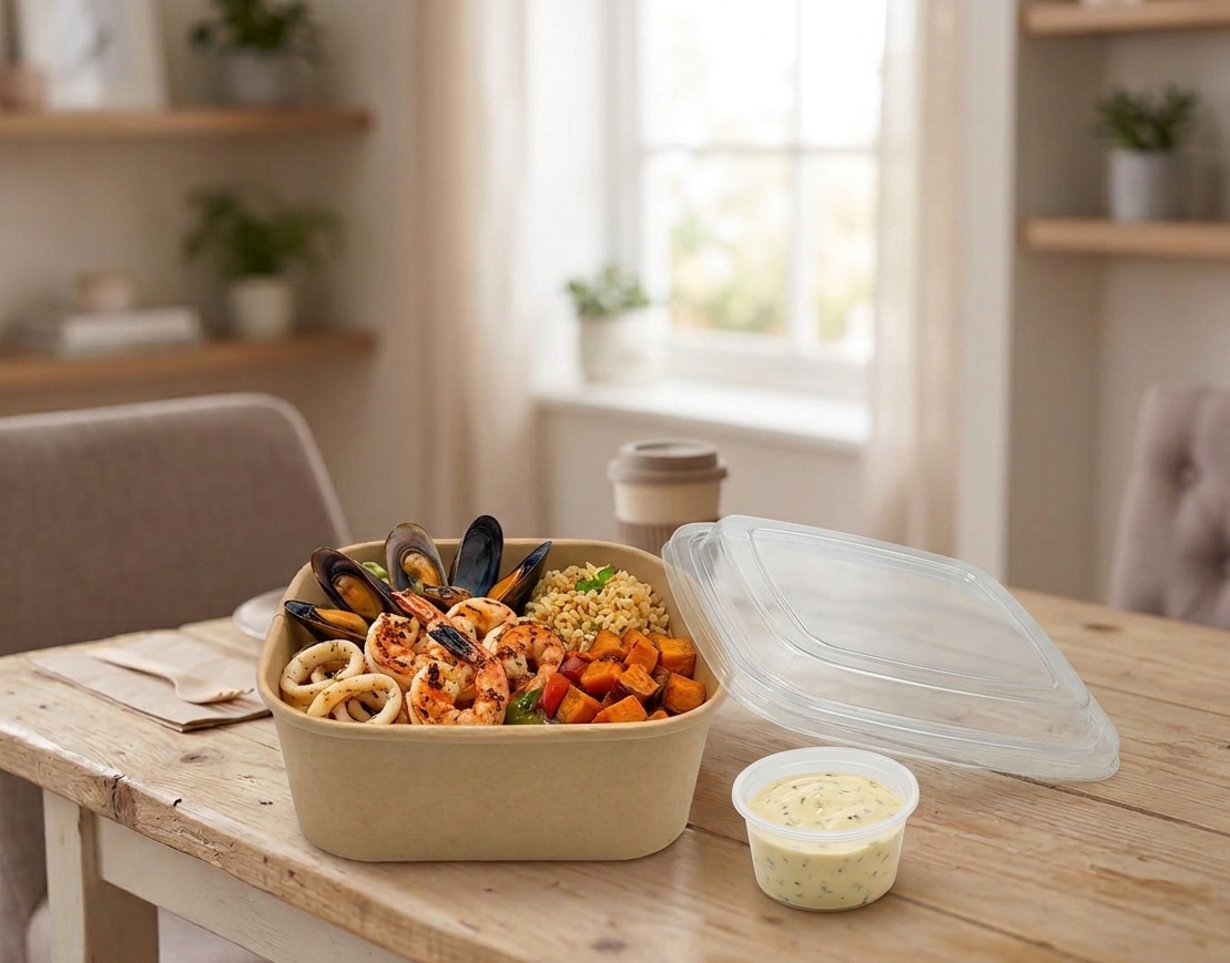 Popierinė kvadratinė maisto dėžutė 1000ml yra idealus pasirinkimas restoranams, kavinėms ir maisto išsinešimo paslaugas teikiančioms įmonėms, siekiančioms tvarumo bei praktiškumo. Dėžutė pagaminta iš aukštos kokybės perdirbamo popieriaus, kuris užtikrina aplinkai draugišką maisto pakavimo sprendimą.